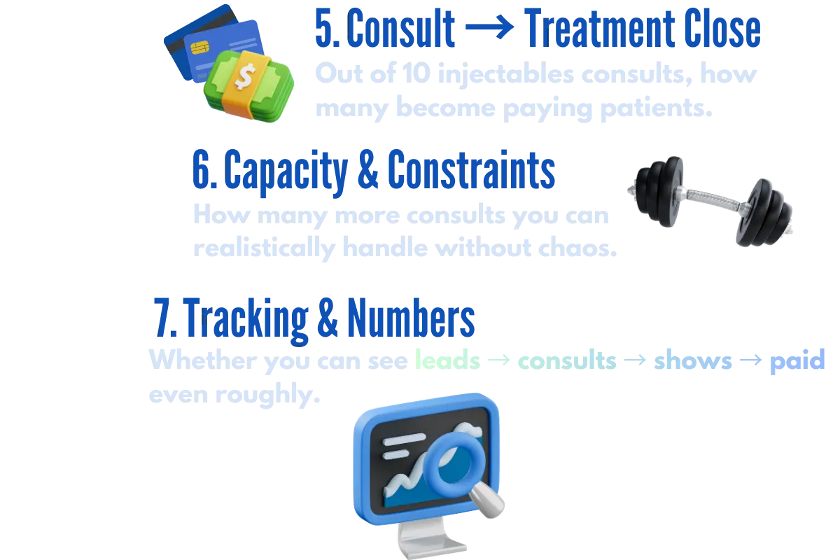 - How their websites, funnels, and booking flows are structured to convert strangers into paid treatments
