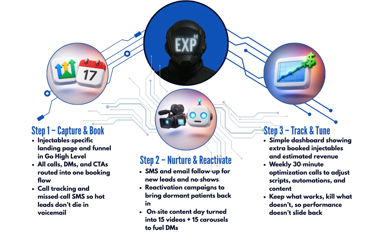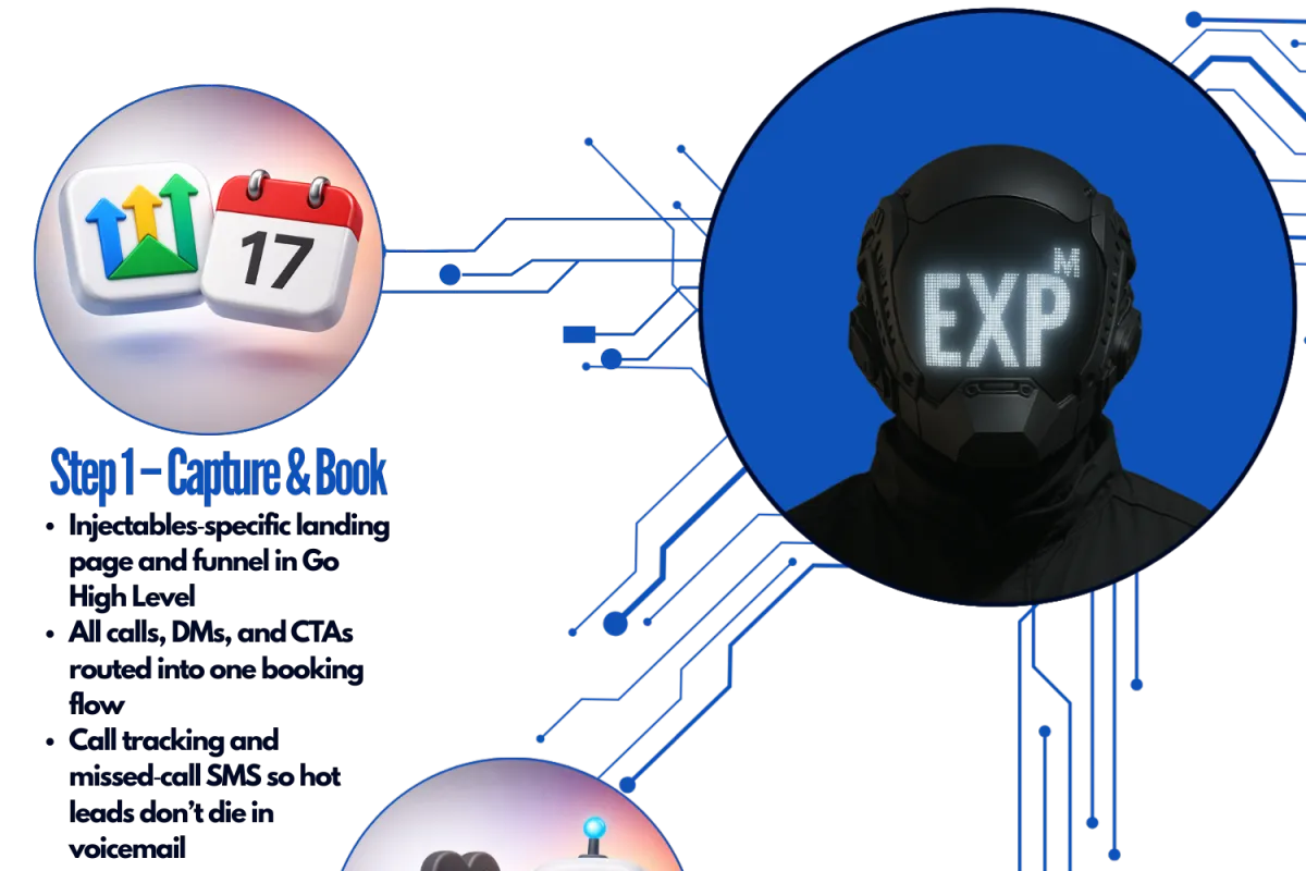 A dedicated injectables booking hub in Go High Level that every call, DM, and CTA points to.