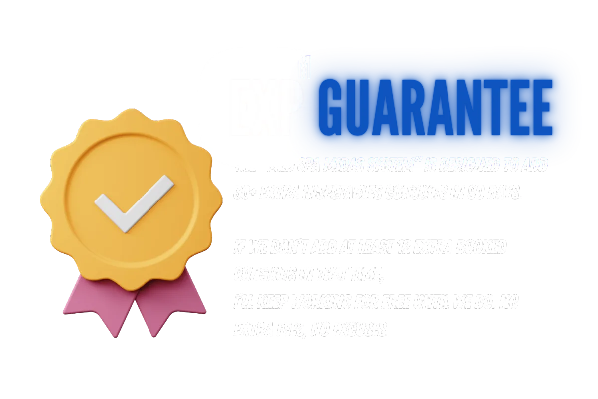 A: If we don’t add at least 12 extra booked injectables consults in 90 days, I’ll work for free and launch another reactivation campaign at no extra cost until we hit the minimum booking.