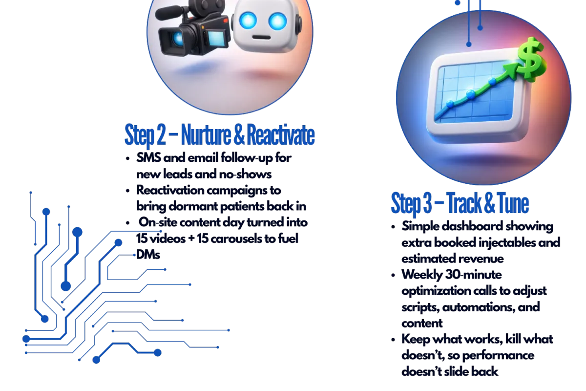 Med spas doing roughly $80K–$200K/month that want injectables busier